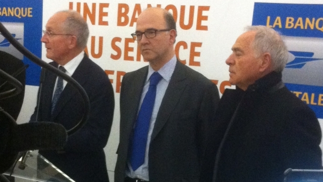 Illustration : Pierre Moscovici, hier à Dijon, aux côté de Philippe Wahl, directeur général de La Banque postale, et de François Patriat, président de la région Bourgogne.