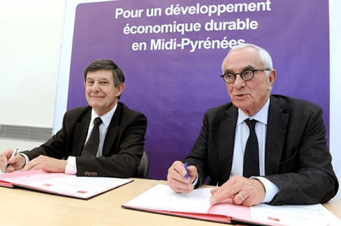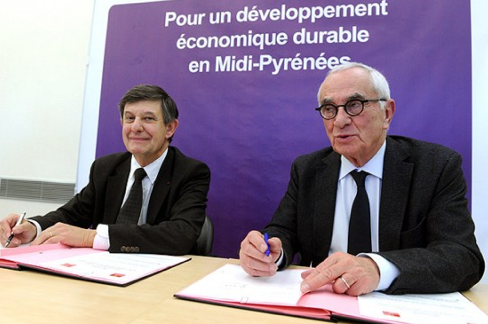 Illustration : signature de l’accord conclu entre la Région Midi-Pyrénées et la Caisse des Dépôts et Consignations, en novembre dernier, pour la création d’un opérateur régional public d’investissement pour les énergies renouvelables.