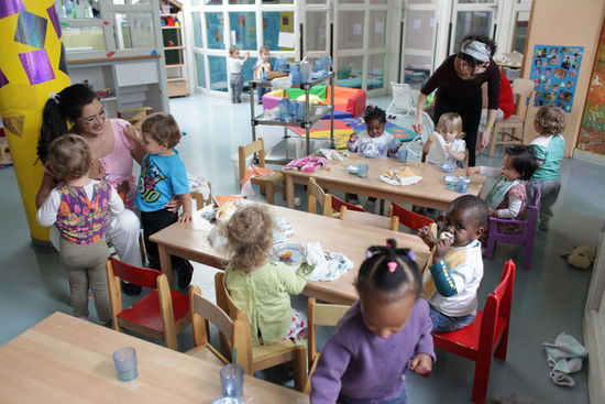 Illustration : Crèche municipale à Saint-Ouen (Seine-Saint-Denis). La ville compte 3.000 enfants de moins de 3 ans et propose 8 crèches collectives (3 municipales, 4 départementales et 1 interentreprises « Babilou », une crèche parentale) ainsi qu’un accueil individuel par les assistantes maternelles et des ateliers d’éveil en présence des parents pour les enfants gardés à la maison.