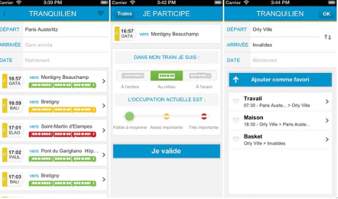 Dans le cadre du 3ème concours Dataconnexions organisé par Etalab qui récompense les meilleurs projets utilisant les données publiques, l’application TRANQUILIEN proposée par la SNCF Transilien vient d’être récompensée. Elle permet aux voyageurs des trains RER d’Ile-de-France (à l’exception des lignes du RER A et B gérées conjointement avec la RATP) de connaître en temps réel la fréquentation d’un wagon d’un train de banlieue. L’objectif de l’application est d’anticiper l’affluence dans les trains pour aider les voyageurs à trouver une place assise et, pour ceux qui le peuvent, éviter les périodes de pointe les plus chargées. Alors que le taux d’occupation des trains n’est que de 40% en moyenne, cela peut parfois atteindre 200% en heure de pointe. Il suffit de renseigner son origine, destination ainsi que l’horaire du train souhaité afin de connaître une estimation de son affluence. Les trains correspondant à l’itinéraire souhaité s’afficheront de trois couleurs différentes. Si une des sections du train s’affiche en vert, cela signifie que l’on peut très certainement voyager assis. Si c’est en jaune, on peut probablement encore trouver une place assise. En revanche, si c’est en rouge, il y a peu de chances de trouver une place assise et, s’il le peut, le voyageur peut décaler son trajet pour voyager plus confortablement.